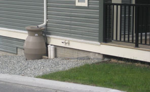 Rain barrels (JPG) collect rainwater that lands on your roof so that it can be used to water plants, lawns and gardens. Water that enters the ground rather than a storm pipe helps to maintain base flows in nearby creeks. Using a rain barrel also helps to conserve our drinking water supply by reducing the amount of tap water you use.