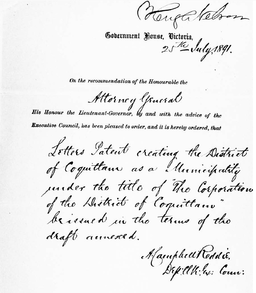 July 25, 2017 marks 126 years since the first Letters Patent were signed, creating the Corporation of the District of Coquitlam. Since then, subsequent Letters Patent have redefined Coquitlam’s boundaries and the composition of its administration, all leading to the City of Coquitlam we know today.
