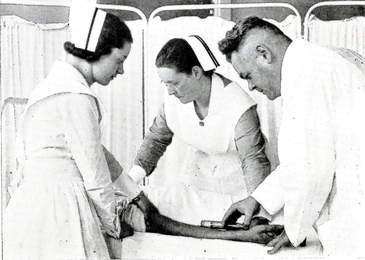 Back row: A. McKenzie, J. Couch, G. Anderson, M. Hall, Dr. Gee, Dr. Campbell, Miss Josephine Kilburn, Dr. Davidson, Dr. Ryan, Dr. Byrne, Edna Colvin, Mary MacDonald, B. Catherall